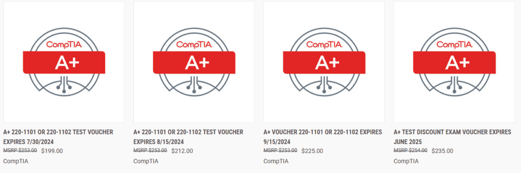 If you are a student, absolutely go to the CompTIA Academic Store to get your vouchers! It’s half price and the best deal. They will have you verify your student status though, so prepare a student transcript and student email for them.